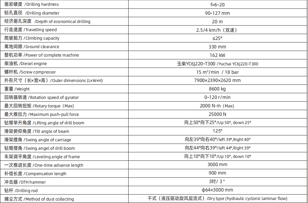 可鉆鑿垂直、傾斜和水平孔,適用于露天礦山和石方工程。